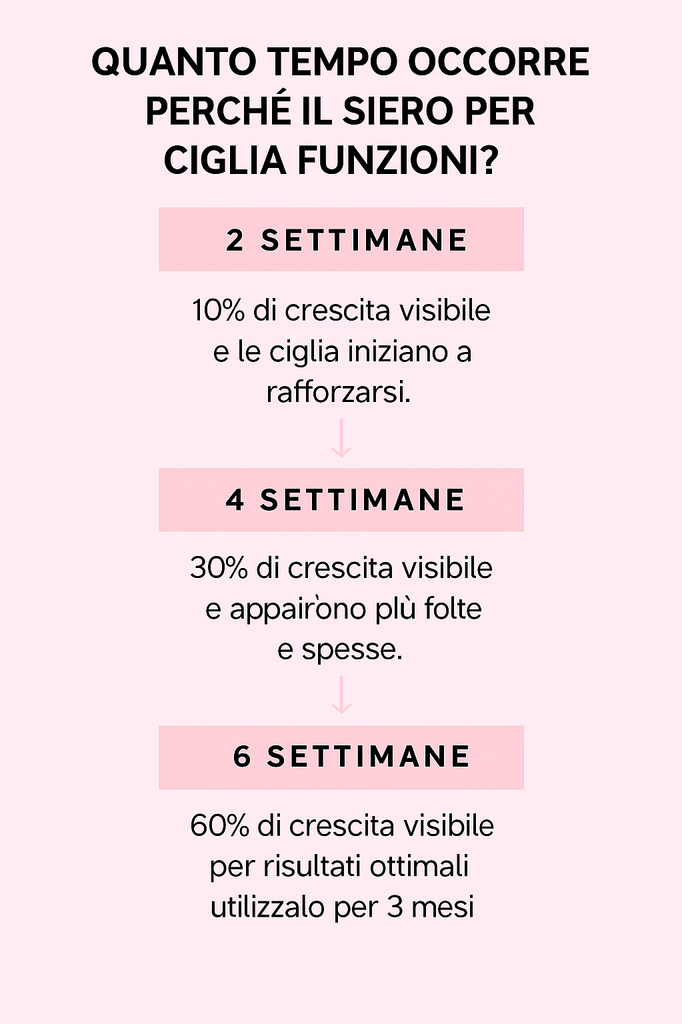 Il nostro siero, dermatologicamente testato, nutre, rinforza e stimola la crescita naturale delle ciglia. Grazie alla formula a base di peptidi, agisce sulle 3 fasi del ciclo delle ciglia, favorendo una crescita visibile in 4-8 settimane e risultati completi in 12 settimane.
